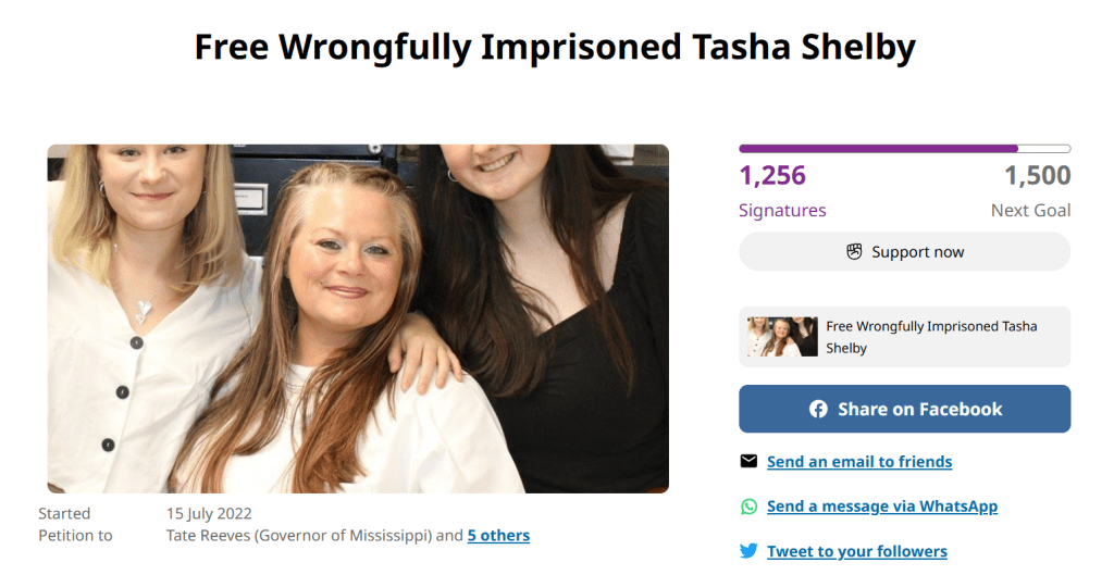 We have launched Change.org petition campaigning for Tasha Shelby’s release.