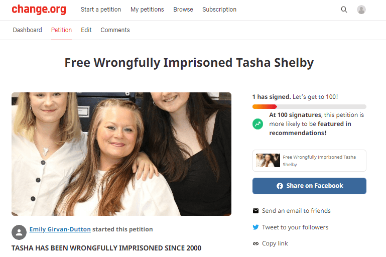 We have launched a Change.org petition campaigning for Tasha Shelby’s release.